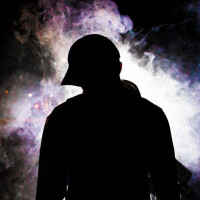 The image shows a silhouette of a person against a background that appears to be smoke or fog. The individual is wearing a cap and seems to be looking away from the camera, adding a sense of mystery or intrigue to the scene. This type of imagery often conveys a sense of drama or suspense.