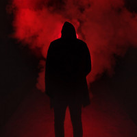 The image shows a silhouette of a person standing amidst red smoke or fog, giving the impression of a mysterious or dramatic scene. This could be interpreted as a representation of themes such as isolation, danger, or a moment of reflection.