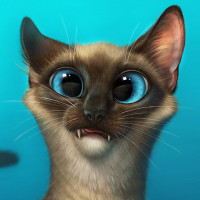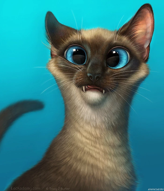 The image features a stylized, animated depiction of a cat. The cat has