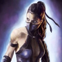 an illustrated character known as Kitana from the Mortal Kombat franchise. She is depicted wearing her signature attire, which includes