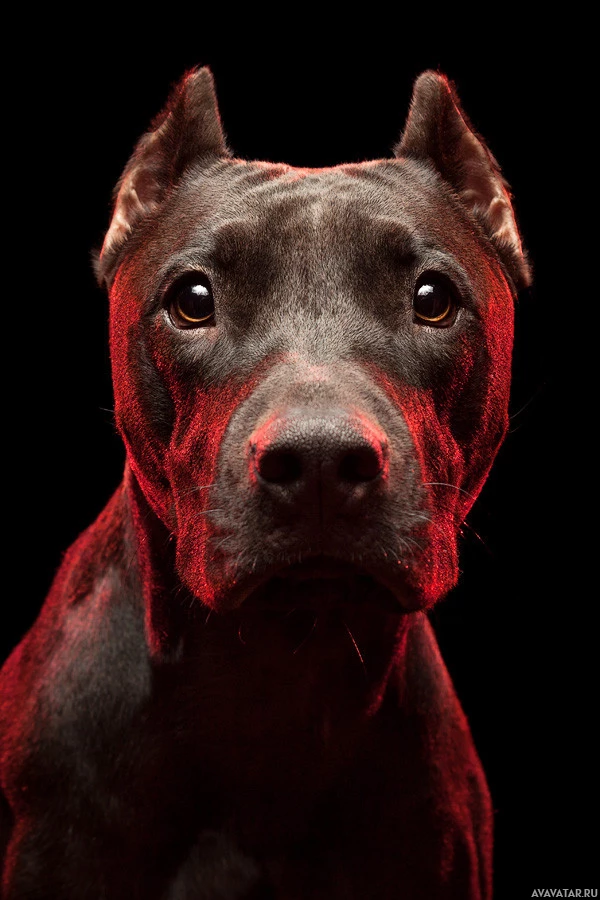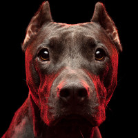 pointed ears. It appears to be a focused or attentive expression, and the background is out of focus, which highlights the subject in the foreground. This could be an example of studio photography meant to capture the dog's appearance and expression clearly.