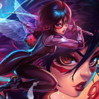 This image features a collage of three different illustrations, each depicting the character Alita. In each illustration, Alita is shown in various poses and expressions, highlighting her