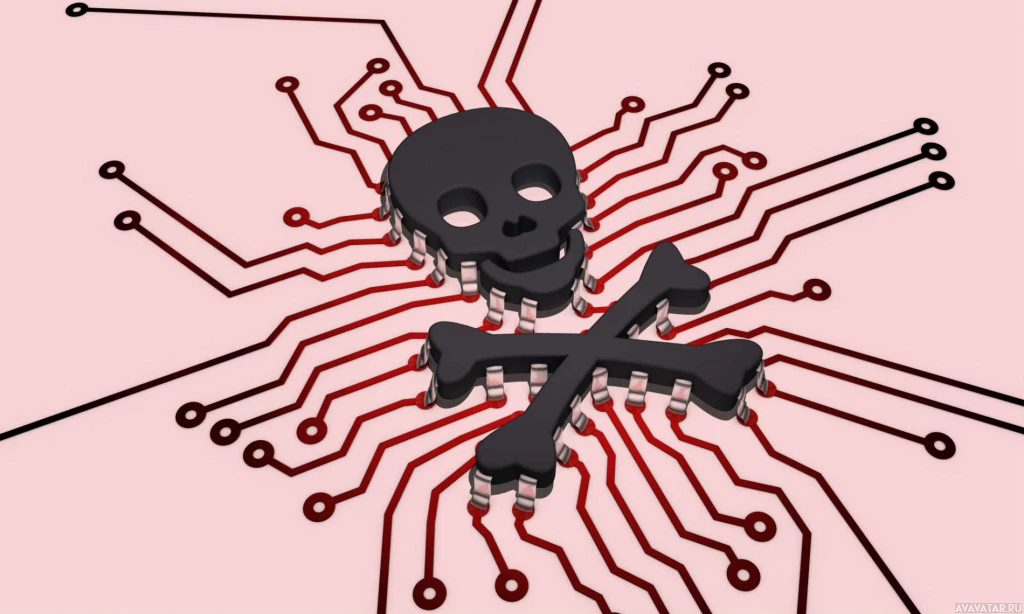 The image features a skull with