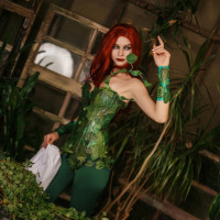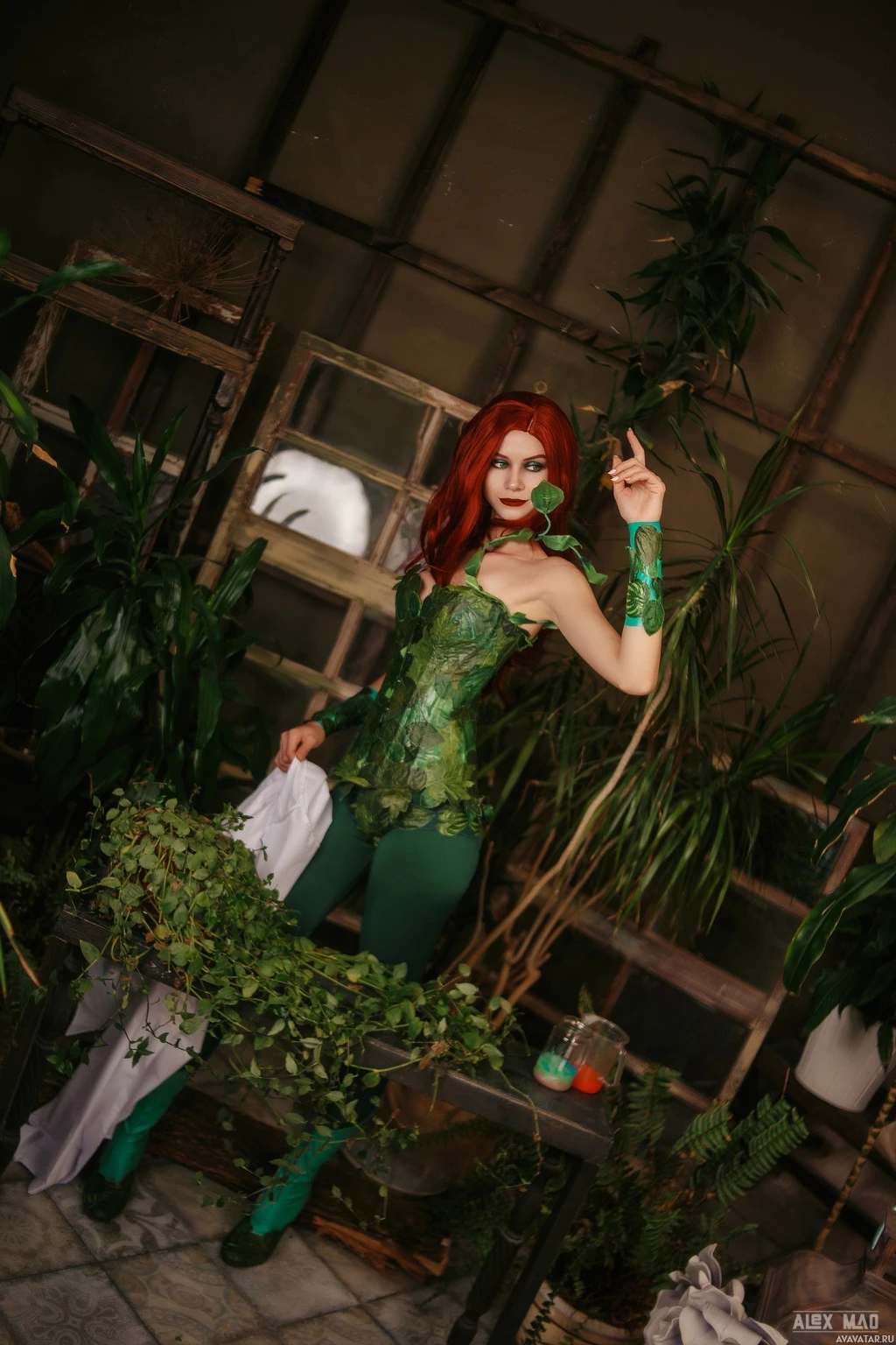 In the picture, there is a person dressed in cosplay as Poison Ivy from
