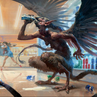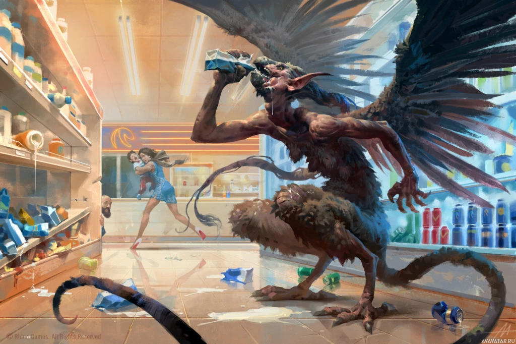 a gargoyle character. The gargoyle has wings and horns, with