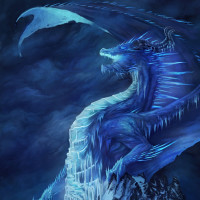 a fantasy scene featuring a dragon. The dragon is large and majestic, with a body that appears to be made of ice or crystal. It has