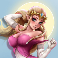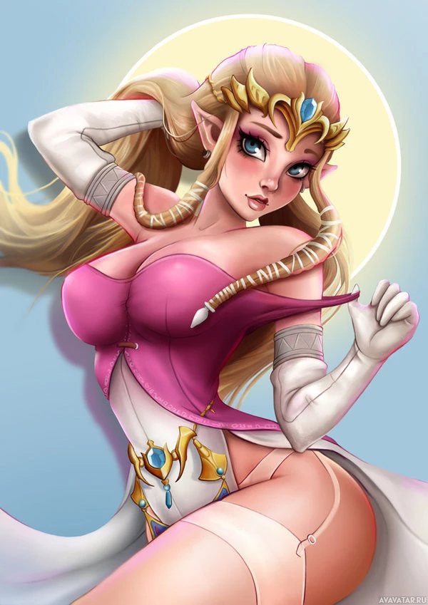 female character, who appears to be from the "The Legend of Zelda" series. She is depicted with elf-like ears,