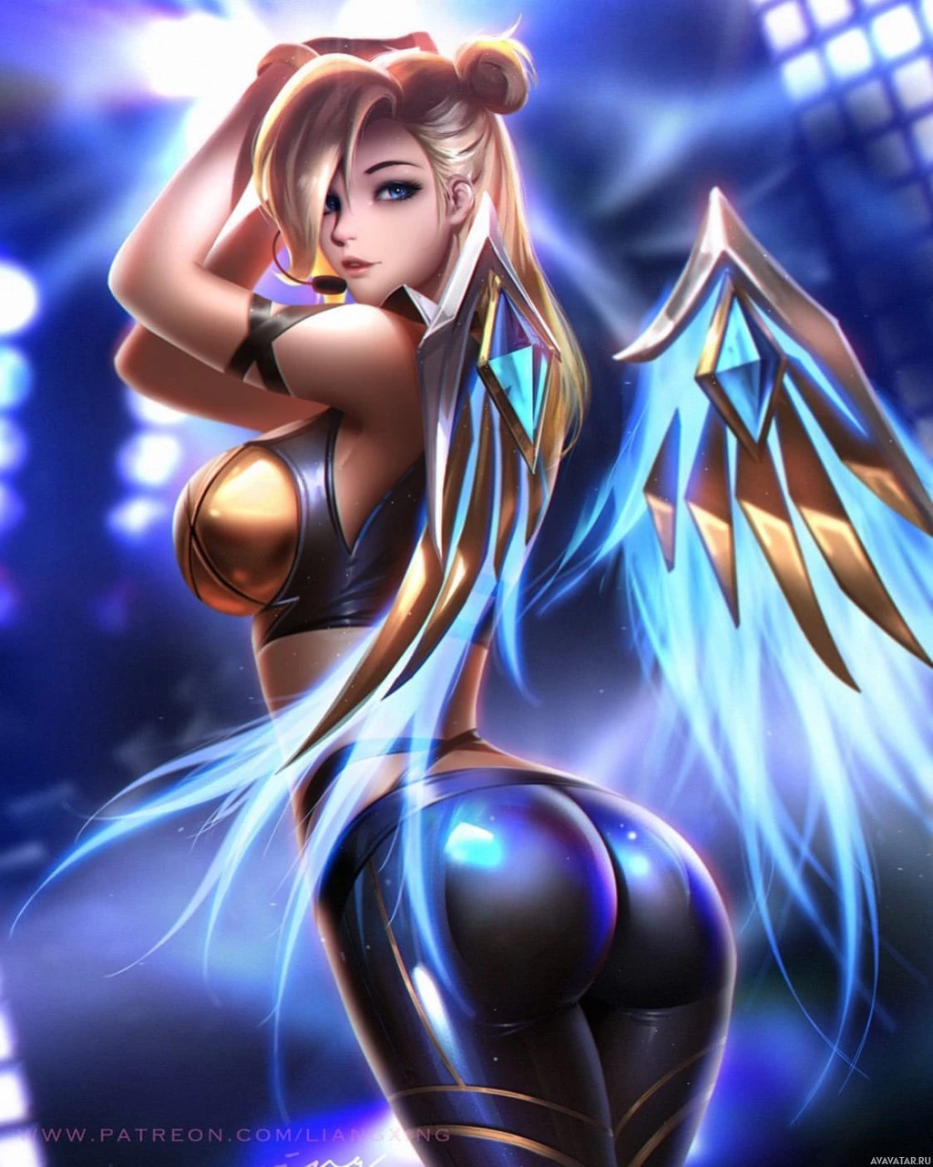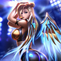 the video game "Overwatch." She is Mercy, a support hero known for her
