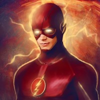 chest area, indicating the presence of his speed powers. The character is looking directly at