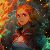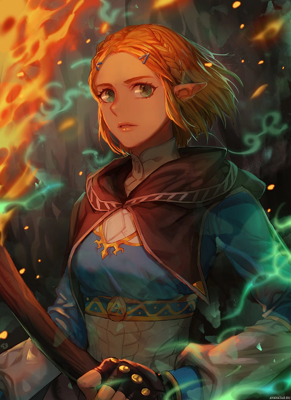 a hooded cloak with what seems like a fantasy theme, and there are flame effects surrounding her, which adds a dramatic or mystical atmosphere to the scene. The character's expression and attire suggest she might be from a fantasy-themed game or story, likely portraying an adventurer or wanderer given the context of the hooded cloak and staff she holds.