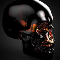 Картина содержит 3D-рендеринг человеческого черепа с верхней половиной, показанной белым, и нижней половиной, показанной черным. Это создает интересный контрастный эффект, возможно, символизирующий жизнь и смерть или хорошее здоровье против болезни.