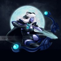 The image depicts a stylized illustration of a character that appears to be from the game Dota 2. This character is known as "