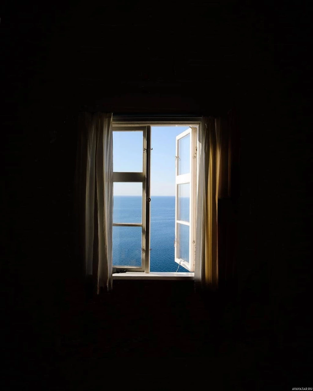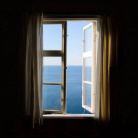 a view of the ocean. It appears to be taken from inside a building or room, looking out towards a vast expanse of water under