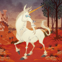 a fantasy scene featuring a unicorn. The unicorn has