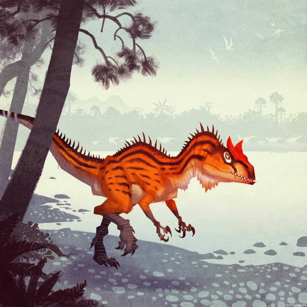 The image depicts an illustration of a Velociraptor, which is a dinosaur known for its distinctive "sickle-clawed" feet and is often featured in