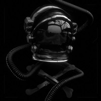 The image shows a helmet, which appears to be a diving or astronaut helmet, with what looks like a coiled hose extending from the bottom. Additionally, there are two crossed swords at the bottom of the image. This could possibly suggest an association with exploration, adventure, or a specific context such as underwater exploration or space travel.