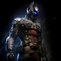 the Batman design. The character is set against what looks like a dark or grim background, possibly indicating