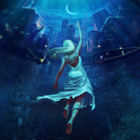 The image features a girl who appears to be in a dreamlike or fantastical setting. She is depicted from behind, with her hair flowing as if she's underwater or in