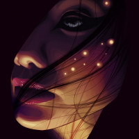 a moment of relaxation or contemplation. Her skin tone is pale to light brown, and there appears to be a subtle glow around her face, possibly from a soft