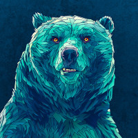 an illustrated bear. It appears to be a digital artwork rather than a photograph. The bear is depicted with a detailed, lifelike appearance and is facing directly forward, giving the impression of being alert or attentive. The color scheme suggests it might be