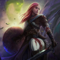 armor pieces and what appears to be a cloak draped over one shoulder. In the background, there's