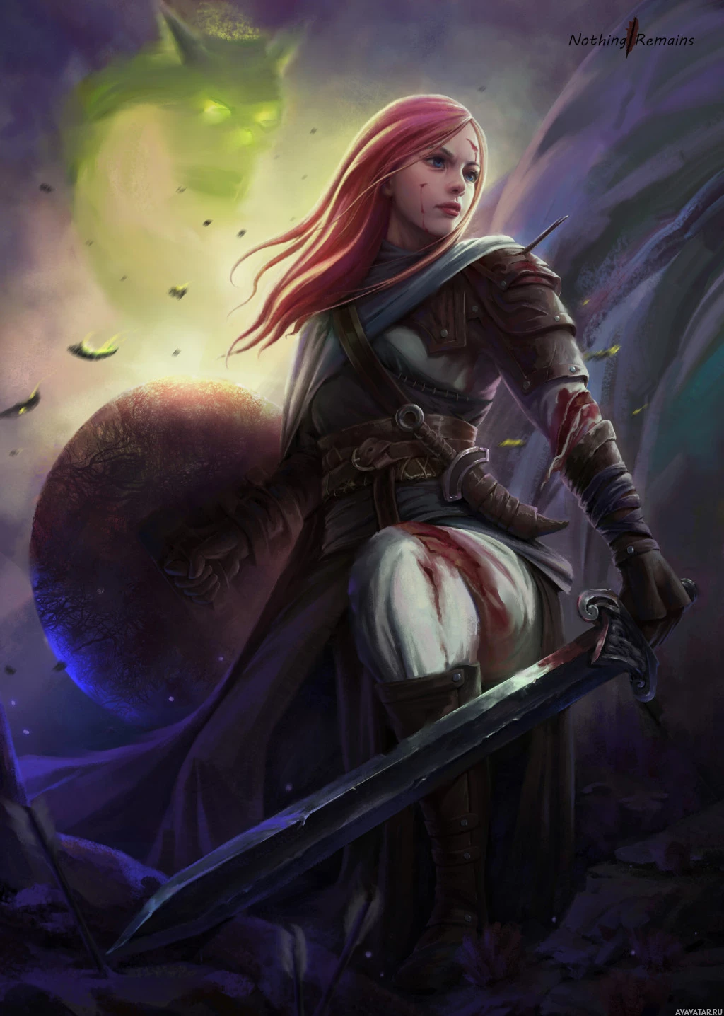a ghostly figure that could represent an enemy or a supernatural element associated with the character's quest. The artwork has a moody atmosphere, enhanced by the use of muted colors and