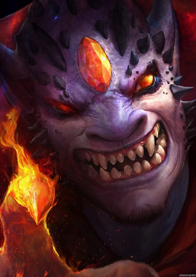 sharp teeth and claws, and its expression suggests aggression or menace. The background includes what looks like flames or fire elements, which could be indicative of the character's abilities or powers within the context of the game or storyline.
