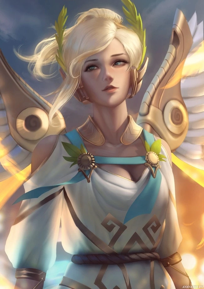the game Overwatch. This is Mercy, a support hero known for her