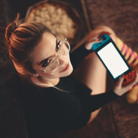 a casual manner and seems to be either taking a break from gaming or preparing to start playing. The lighting and quality of the image suggest it might have been taken with