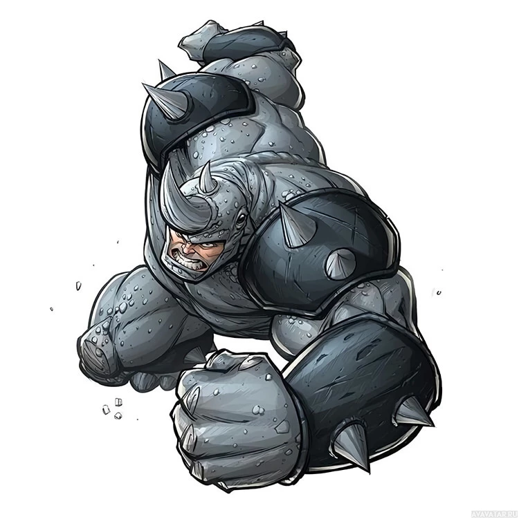 The image shows a character that appears to be a variation of the Rhino character from comic books or
