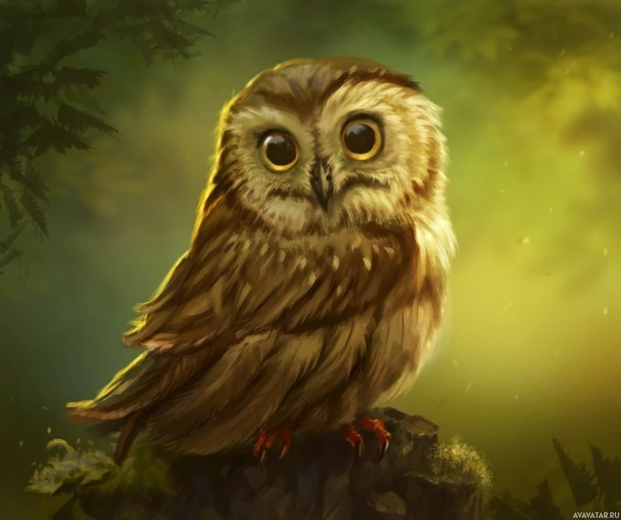 The image features an owl. It appears to be a digital painting or illustration, showcasing the bird in what looks like a forest setting with misty