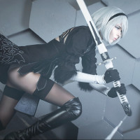 the video game "Nier: Automata." The character is depicted in a stylized, cosplay-like fashion, possibly inspired by