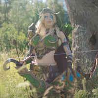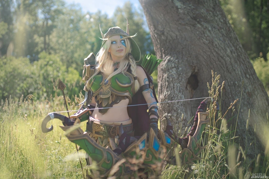 an elf costume, which is associated with the Warcraft franchise. The elf is wearing