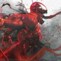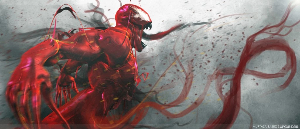 The image depicts a character known as Carnage, who is a fictional supervillain appearing in American