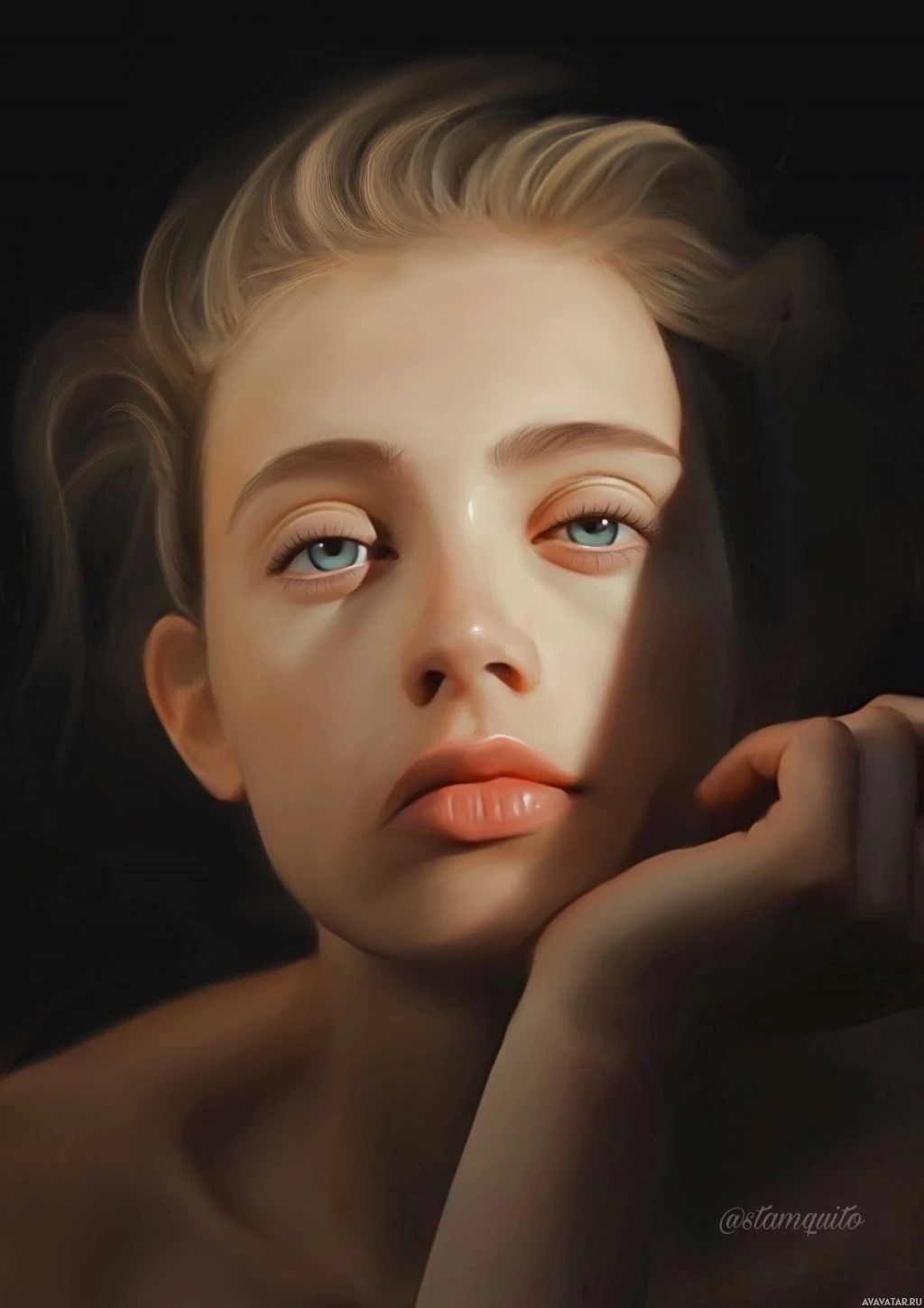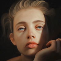 a warm tone that highlights the contours of her face and the texture of her skin. The overall mood of the picture is one of