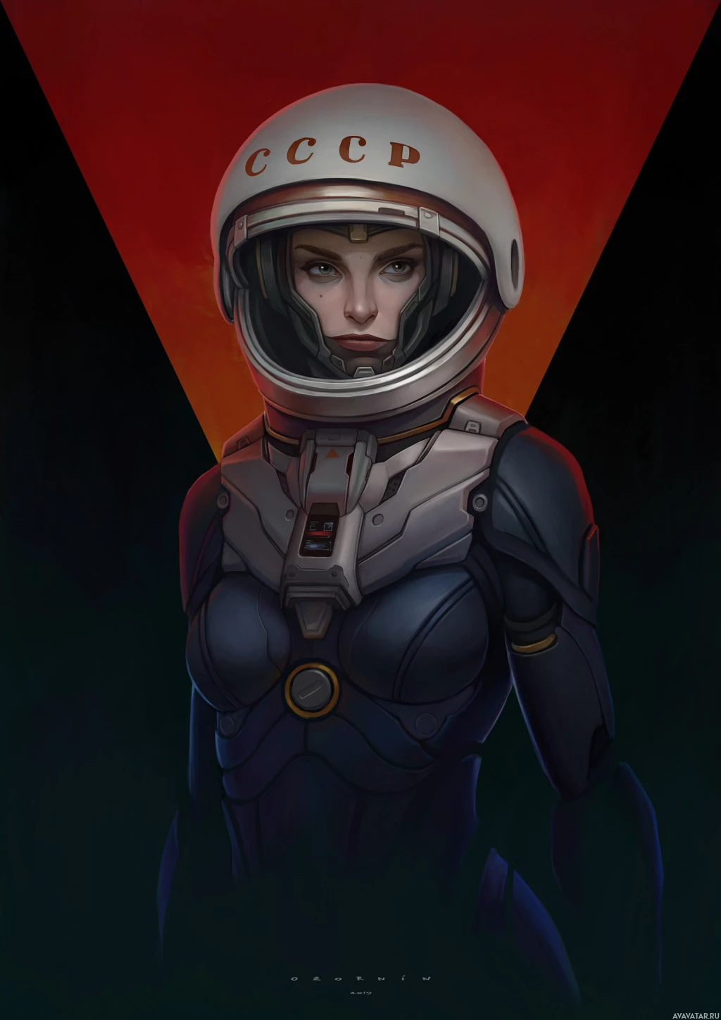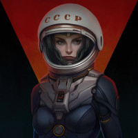The image features an illustrated character wearing a white astronaut helmet with the CCCP inscription, which is the abbreviation for the Union of Soviet Socialist Republics. The character is depicted in a full space suit with detailed design elements and is set against a backdrop that suggests a sci-fi or space theme.