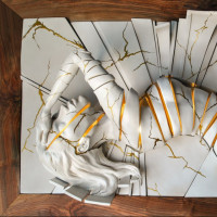 gold foil, giving it an intricate and luxurious appearance. It appears to be a modern, possibly abstract representation of a horse, rather than a classical or
