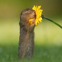 The picture shows a small rodent, possibly a gopher or chipmunk, with its eyes closed and nose close to