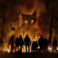 fantasy settings, gathered around a large, glowing silhouette that resembles an owl. The background suggests
