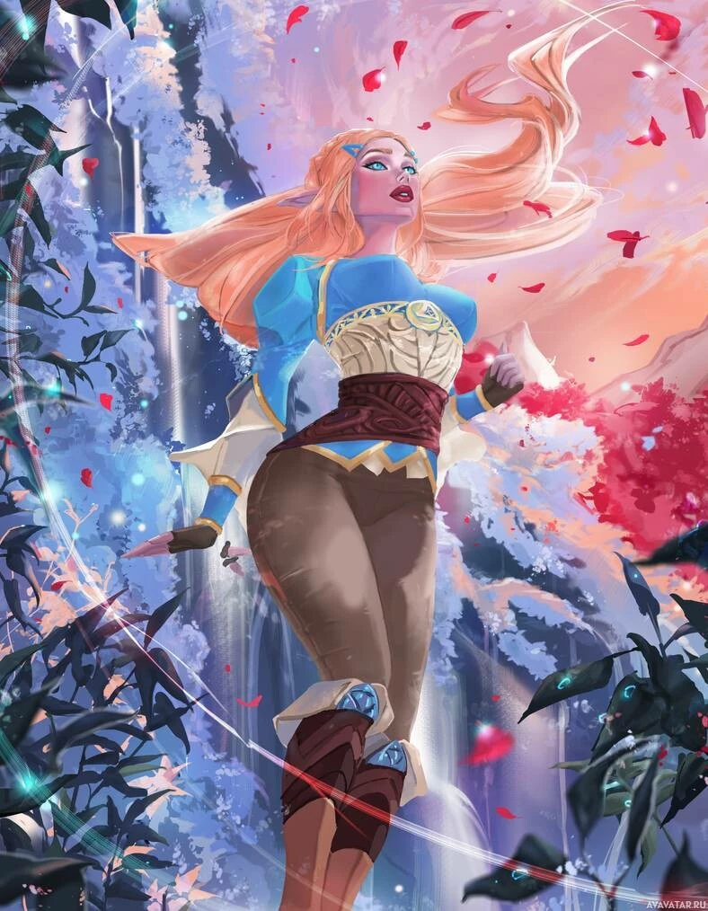 female character, which appears to be from the game "The Legend of Zelda: Breath of the Wild." She is depicted as an elf-like creature with