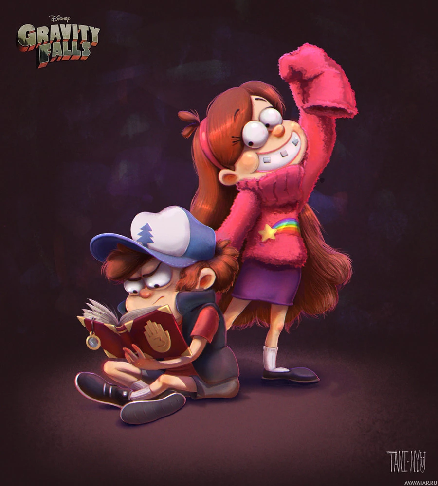 The image features two animated characters, Mabel Pine and Dipper Pine, from the animated television series "