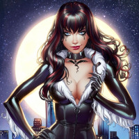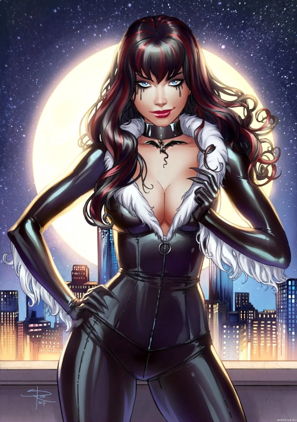 a full moon, which aligns with her typical setting as an urban vigilante.