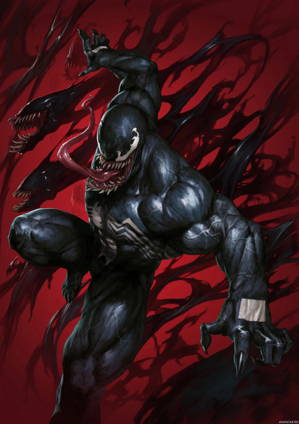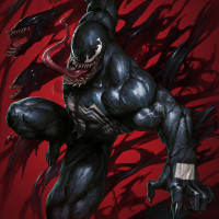 menacing light, reflecting the character's transformation into Venom.