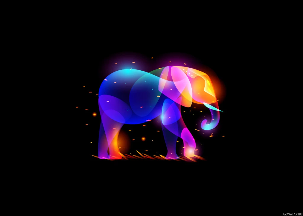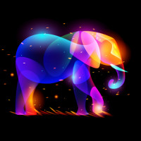 The image shows an animated or stylized representation of an elephant. It has a very colorful and artistic design with