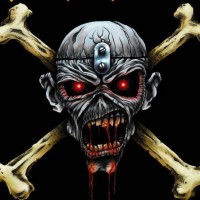 a menacing expression and is surrounded by two crossed swords in the foreground. There are also bones hanging from the bottom of the image, which contribute to the pirate theme. This kind of image might be associated with music or entertainment products that have a gothic, horror, or pirate theme.