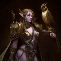 fantasy genres. Additionally, she is holding a bird on her shoulder, which could be a companion or