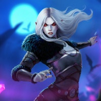 The image features a fantasy-style character that appears to be a vampire. She has long, wavy