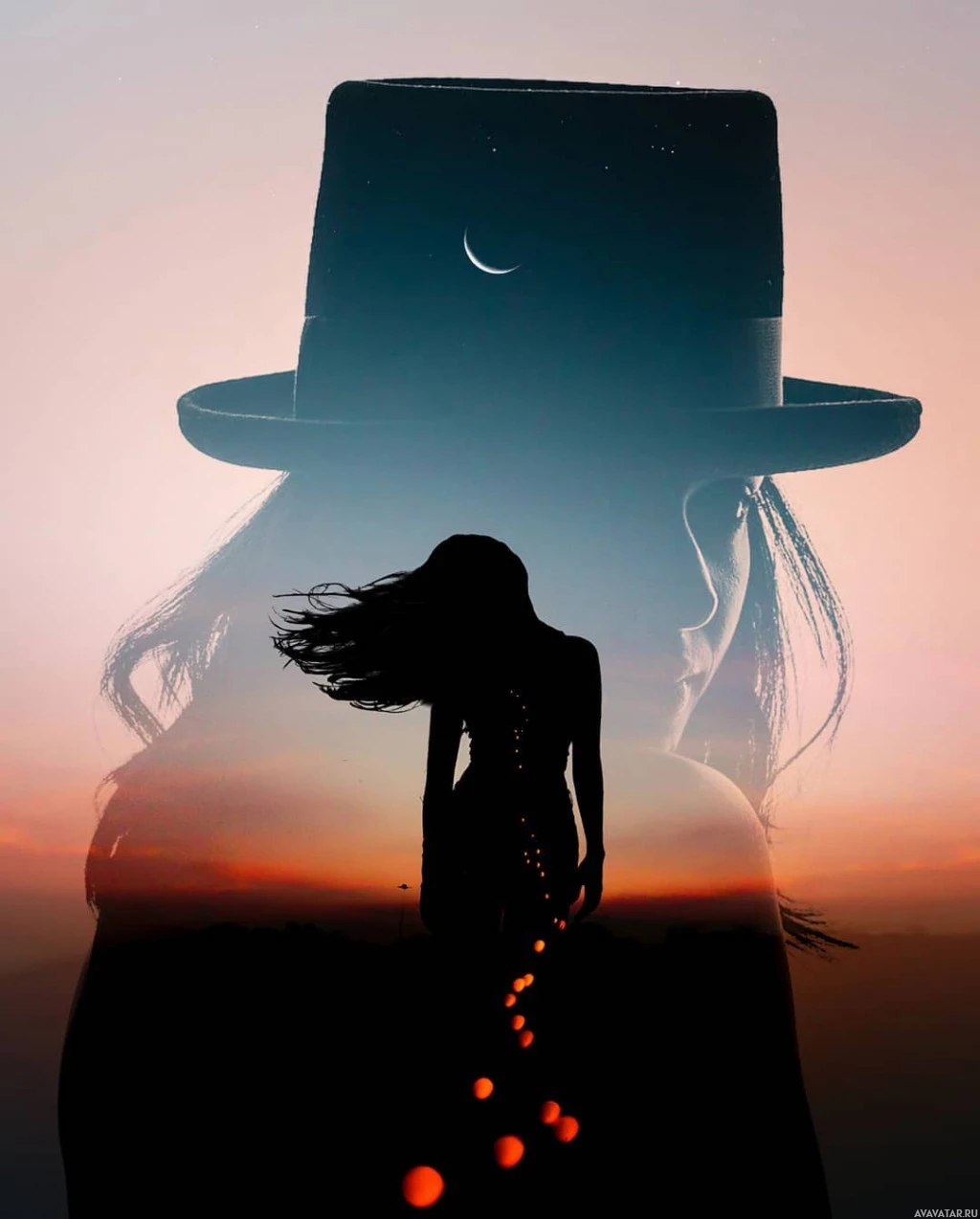 a vibrant sky. The individual appears to be looking down, possibly towards the ground or a specific