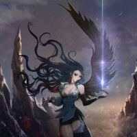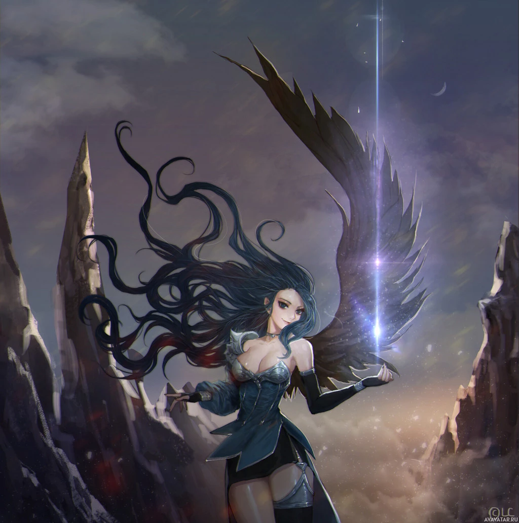an animated character with wings and a fantasy-themed outfit, possibly inspired by angelic or mythical imagery. The character has