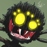 The image shows a stylized cartoon of an anthropomorphic creature resembling a spider, commonly known as the "Spider-Spider" from